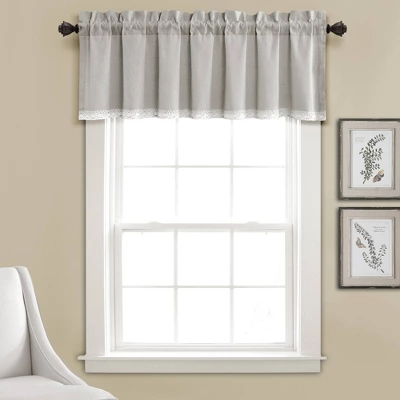 The stylish vintage look of this Linen Lace Valance adds texture and elegance to any room in your home. The lace border pops against the linen fabric. The slight weave variations are authentic to this natural fiber blend and create a relaxed look. Our Linen Lace Valance will instantly enhance the look of your room with its gorgeous lace trim against neutral faux linen fabric. This set can be used in a formal dining room setting, a kitchen, a nursery, a bathroom, or anywhere you want to let in plenty of natural light. The Linen Lace Valance is sold individually, so you will get one valance in each pack. The valance measures 18 inches tall and 52 inches wide with a two-inch header. The Linen Lace Valance is made with a three-inch rod pocket, which gives you two options for hanging these in your home. You can slip the curtain rod through the rod pocket, or you can hang the valance from the rod with clip rings. When it comes time to care for the Linen Lace Valance, we do recommend dry cleaning or hand washing, as the lace trim is too delicate for washing machines. Part of the Linen Lace Collection.