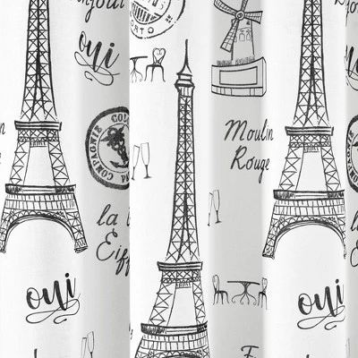 Bring the elegance and romance of Paris to your bathroom with this beautifully decorated Paris Bonjour Shower Curtain. Top to bottom you will find unique designs of the Eiffel Tower, Moulin Rouge, a café setting, and even a few familiar French sayings. Measuring 72 inches on each side, this curtain will fit in nearly any bathroom. This shower curtain is made of cotton for a chic and soft feel. For your convenience, this shower curtain is machine washable and tumble dry on low. Please refer to the product label for full care instructions. This shower curtain is OEKO-TEX® Standard 100 certified.