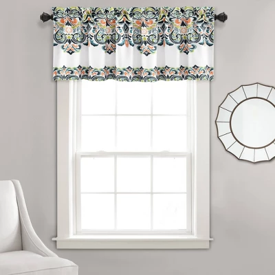 Our Clara Room Darkening Valance offers a combination of artistic flavor and serenity in this stunning bohemian style print. It features bold colors and a unique paisley damask pattern that add a gorgeous pop to your space. It makes the perfect centerpiece for your living area. The patterns of the Clara Room Darkening Valance satisfy aesthetic tastes and sensibilities, while the color satisfies the tranquil and peaceful mood you are trying to create in your home. The Clara Room Darkening Valance measures 18 inches high by 52 inches wide with a 2-inch header and would look gorgeous in a bedroom, kitchen, dining room or even bathroom. For your convenience, this Clara Room Darkening Valance is machine washable on gentle cycle and safe to tumble dry on low heat. You may also use an iron on light heat to release any wrinkles or folds from packaging. Part of the Clara Collection.