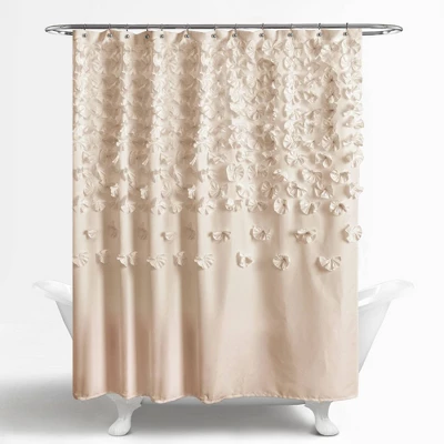 Elegant shower curtain with small flower details cascading from the top will add dimension to your bathroom. Soft, 100% polyester fabric shower curtain with a delicate, pretty and classic design to enhance your space. Lush Décor Lucia shower curtain is the ideal piece for your farmhouse style, shabby chic or vintage bathroom decor. Measures 72 x 72 inches with buttonholes to allow for easy installation with any ring or hook. Due to the delicate nature of the design, this item is dry clean only. Oeko-Tex Certified.
