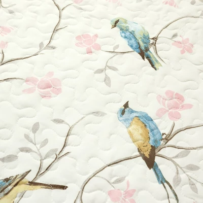 Lush Décor 3pc Botanical Bird And Flower Oversized Reversible Quilt Set White/Blue/Yellow